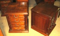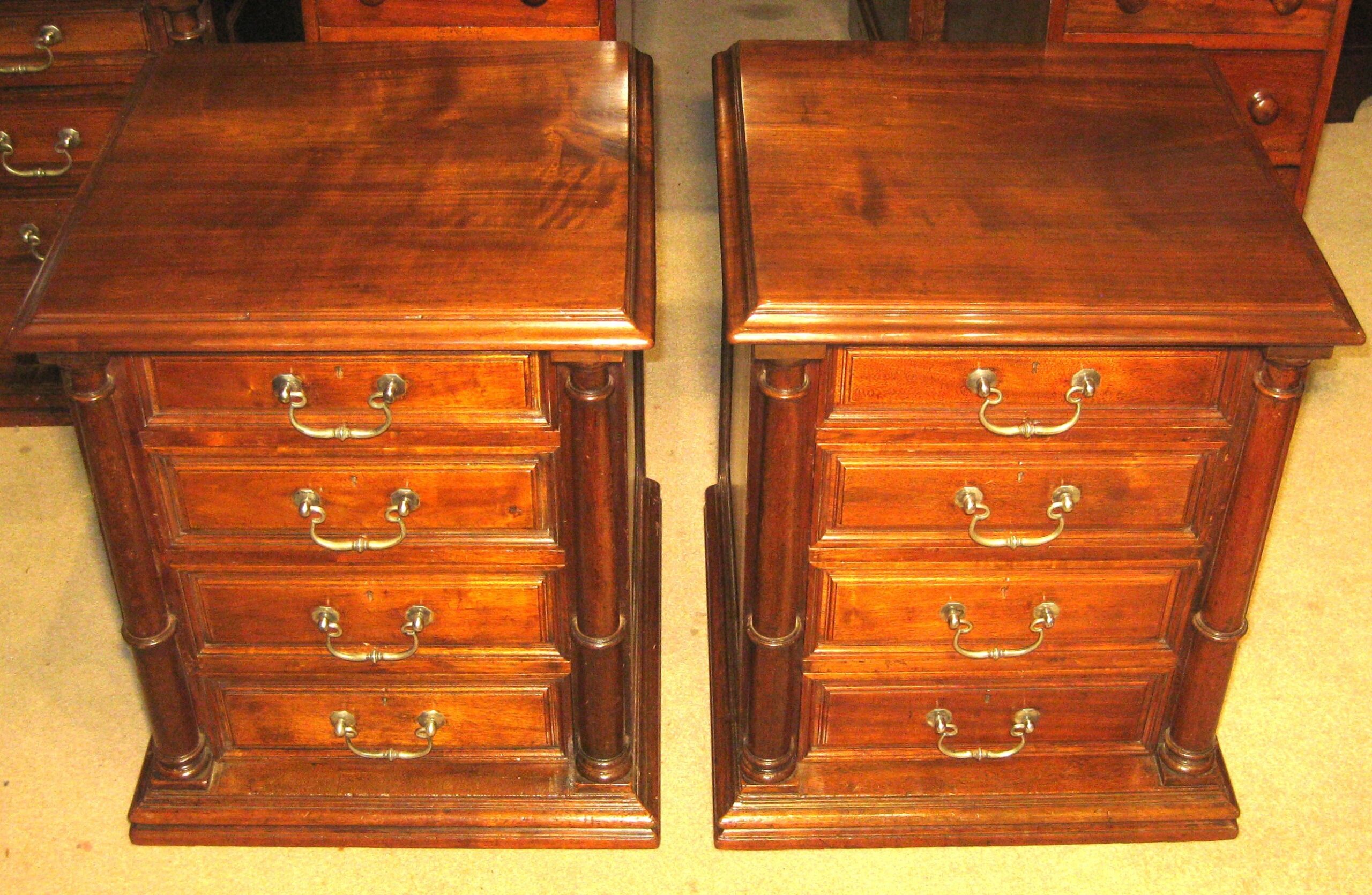 Beautiful quality set of 4 Victorian solid walnut chests of drawers. Can be sold individually or as pairs of bedside chests. Each mould fronted drawer with hand cut dovetailed joints, solid walnut linings and good quality 4 lever brass locks with keys. The sides with raised panels and the front with turned side columns. Originally partners desk pedestals.