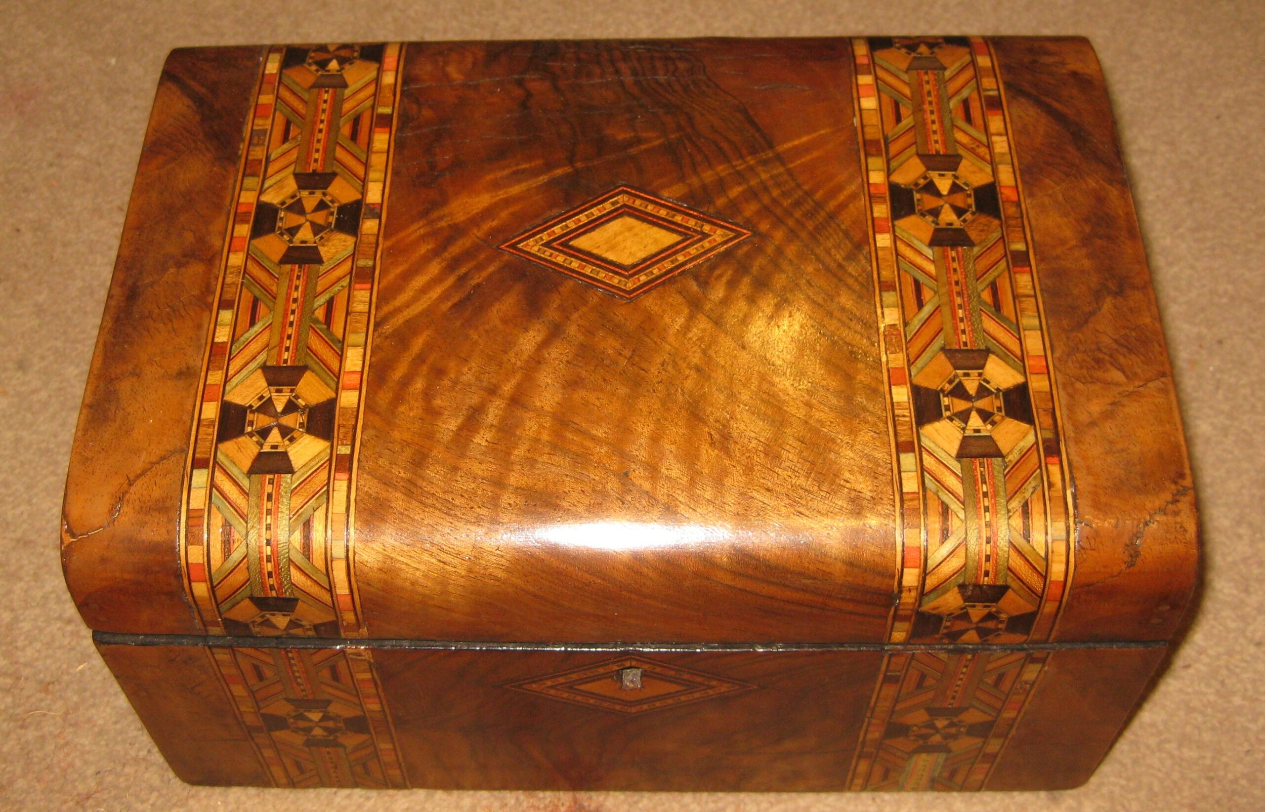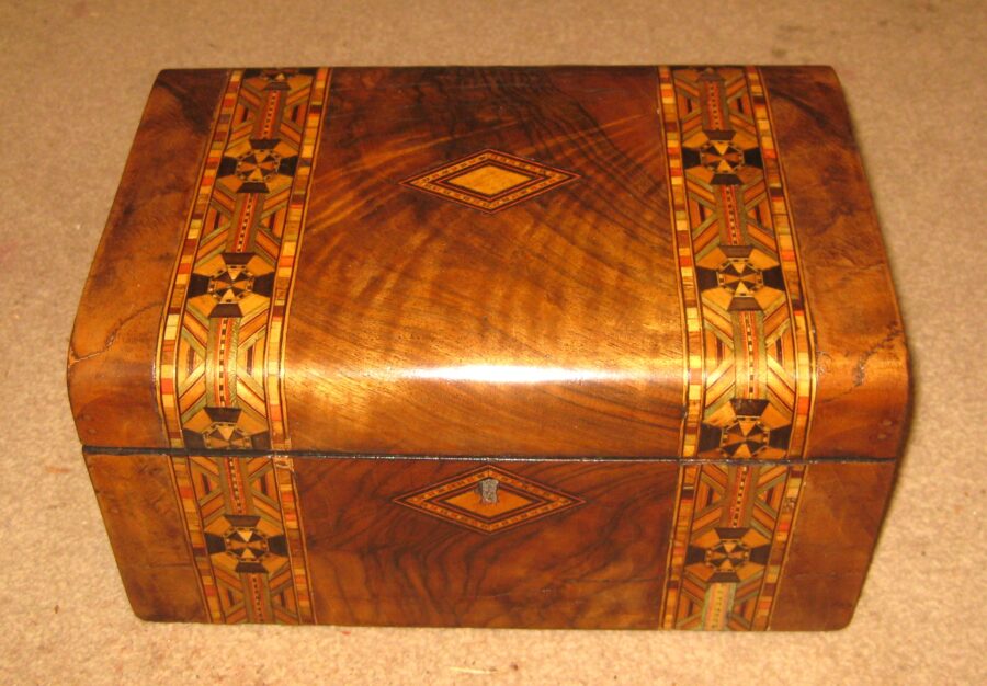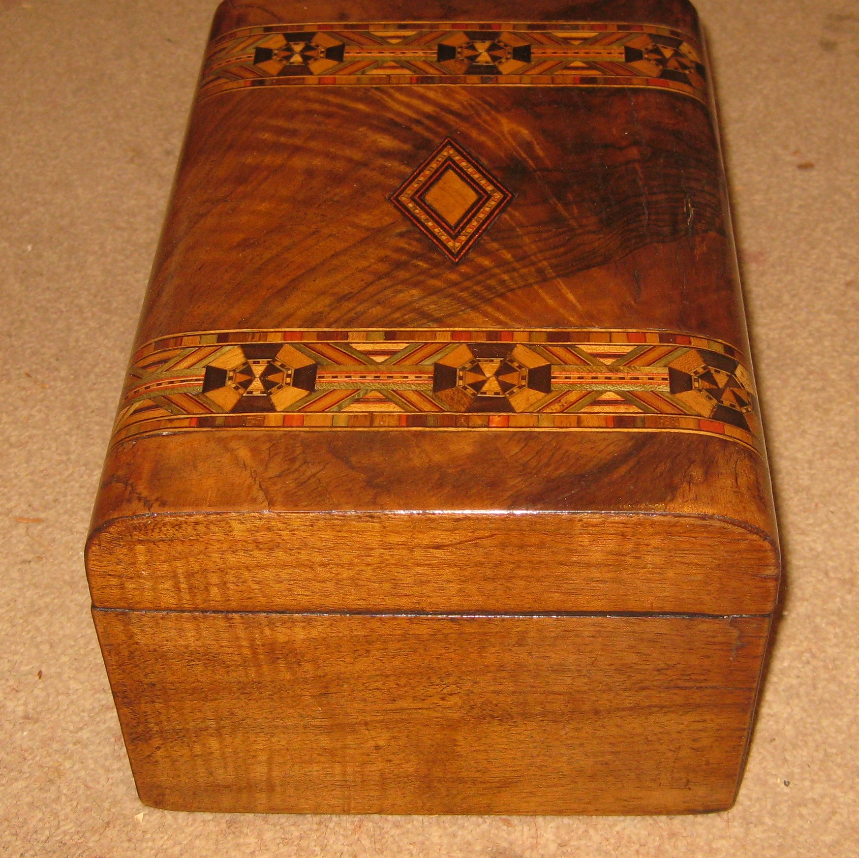 Beautiful Victorian walnut box with Tunbridge inlay.