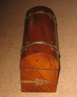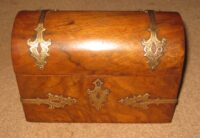 Beautiful little Victorian walnut dome topped box. The locking top opening to reveal a newly lined interior. Decorated all over with engraved brass decoration. With working lock and key.