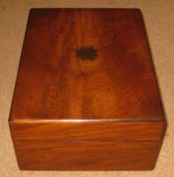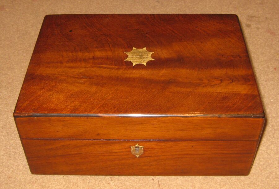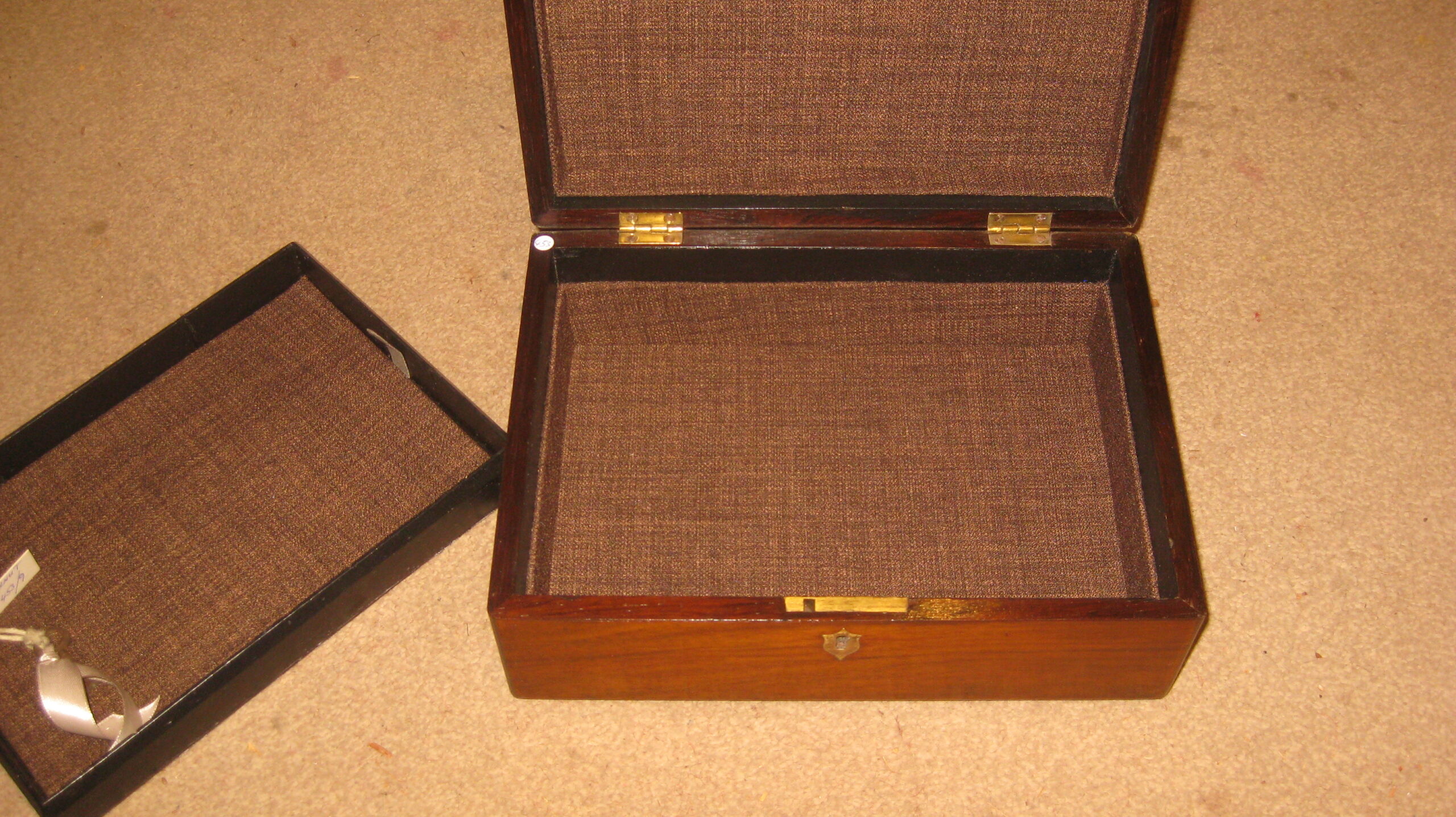 Beautiful Victorian walnut jewellery/trinket box. With lift out tray and working lock with key.