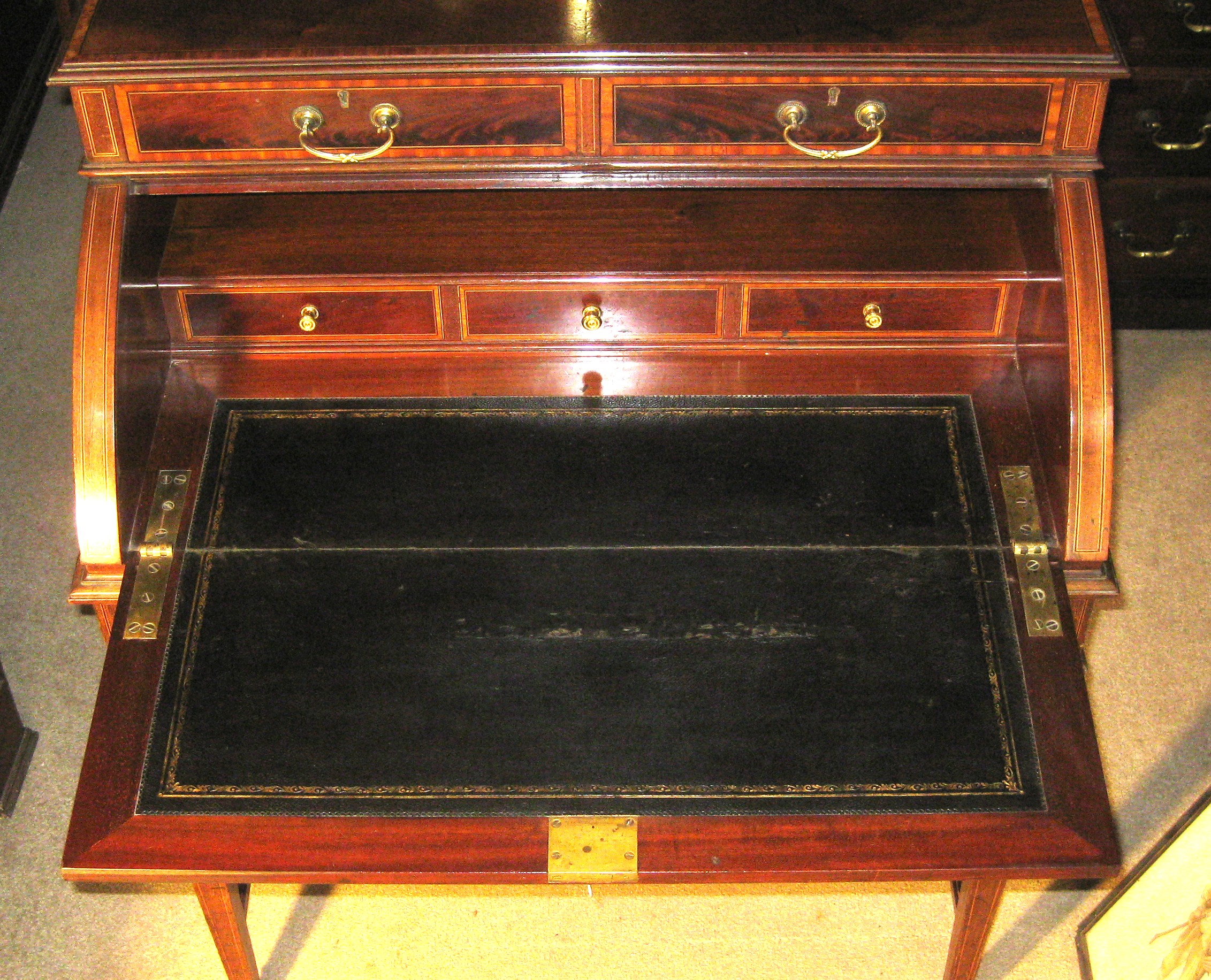 Fine quality Edwardian mahogany inlaid desk by Maple & Co. London.