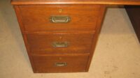 Late Victorian solid teak pedestal campaign desk.