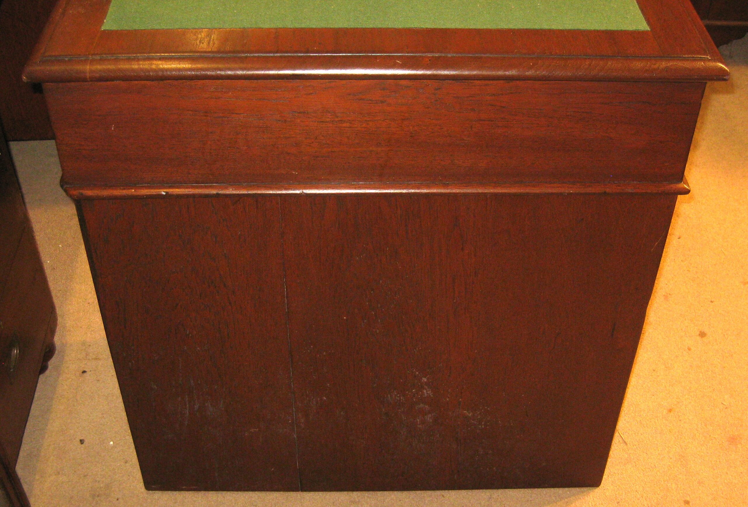Late Victorian solid teak pedestal campaign desk.