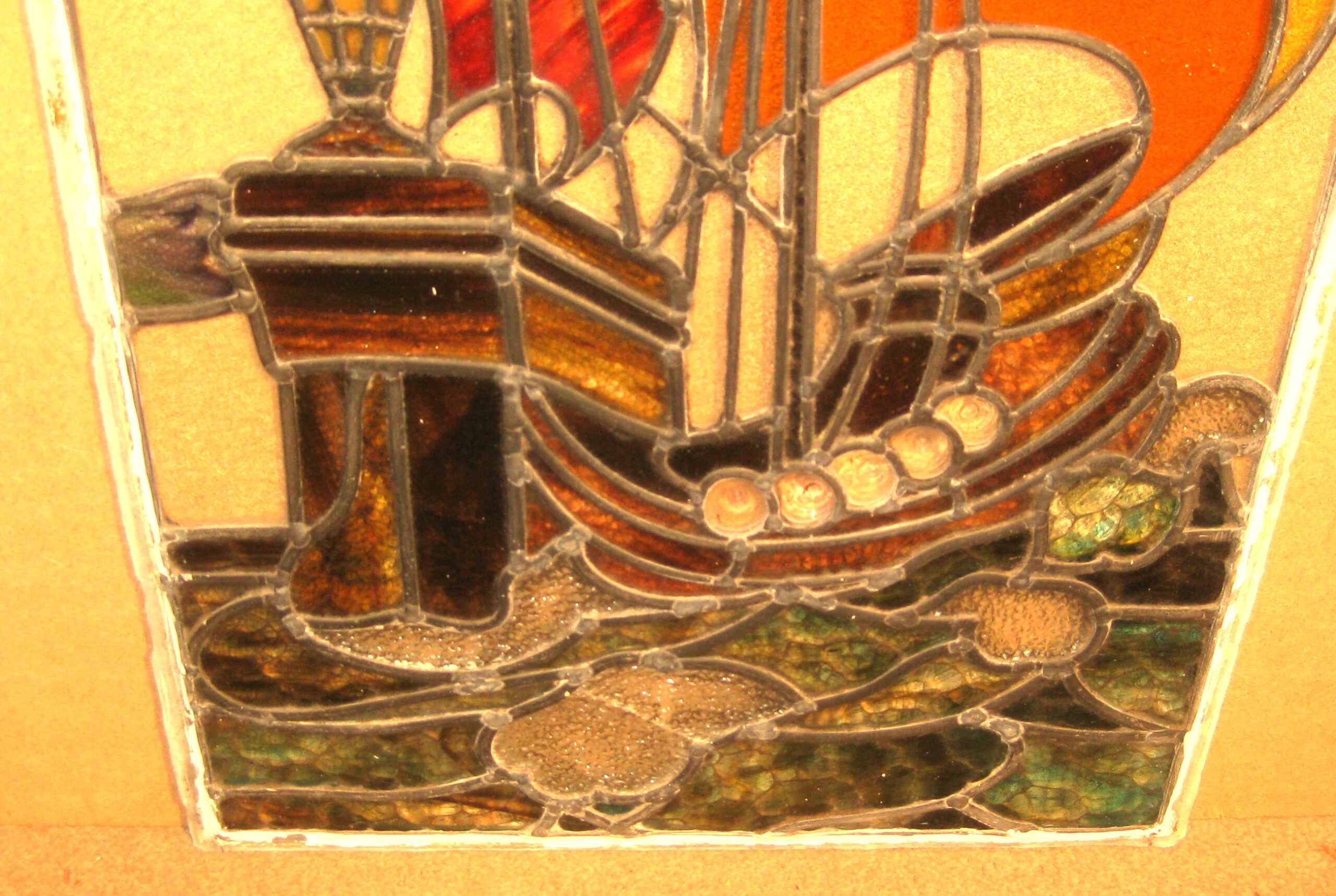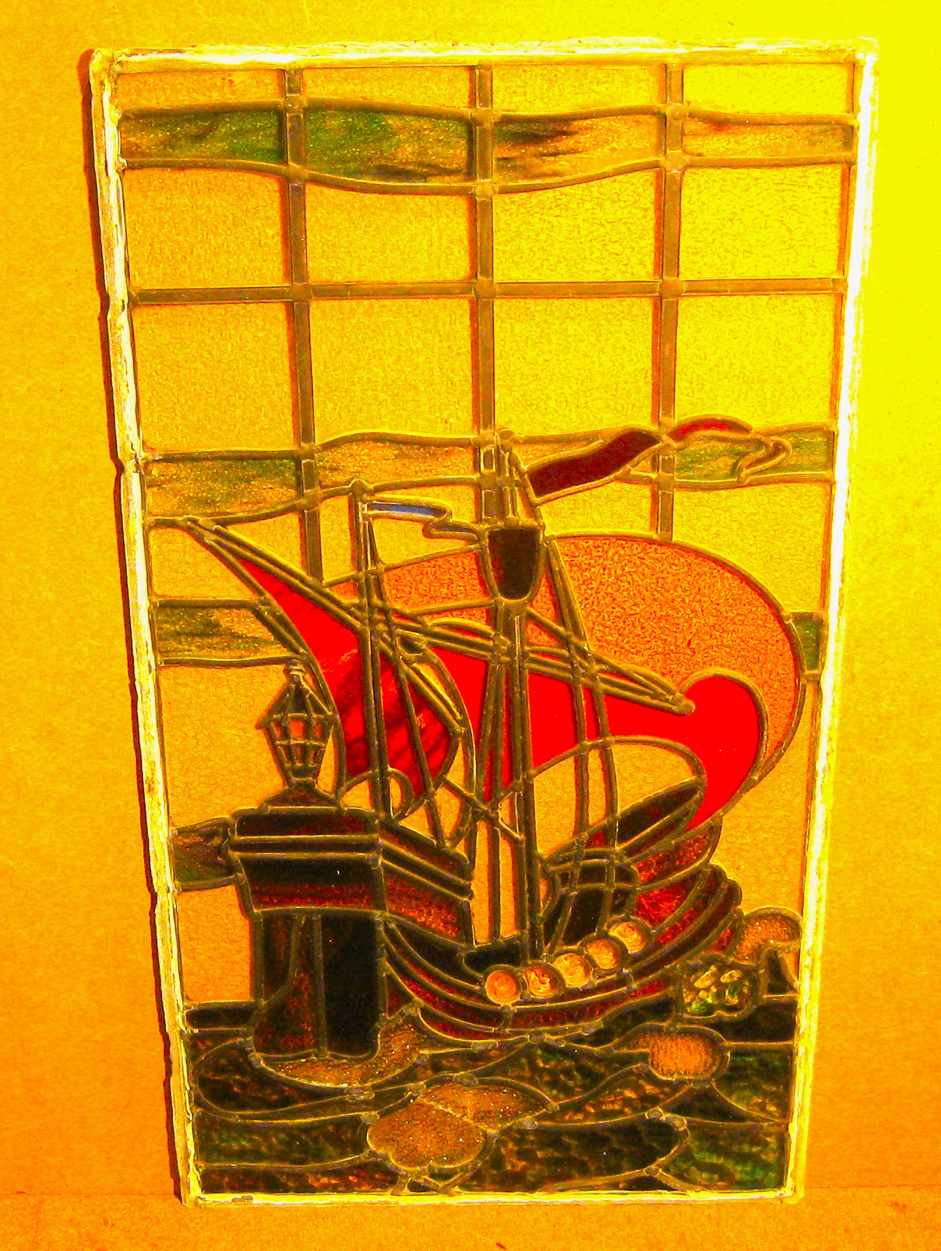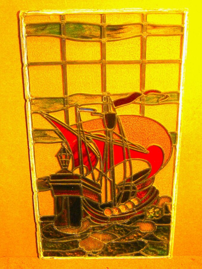 Lovely old stained glass window of a sailing ship