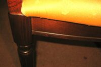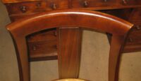 Pair of cherry wood dining /bedroom / desk chairs. With a well shaped back and upholstered seat above turned and fluted front legs.