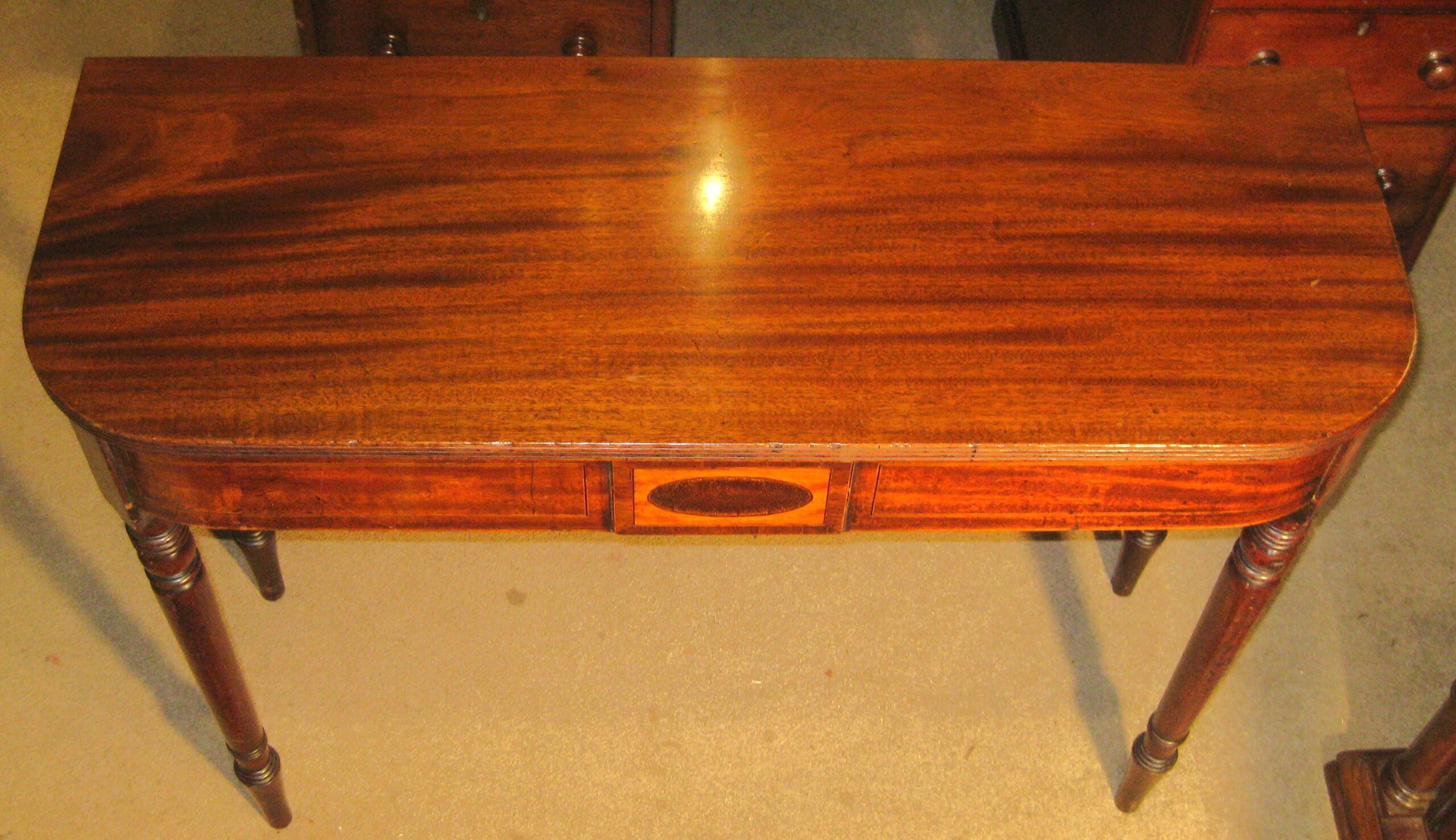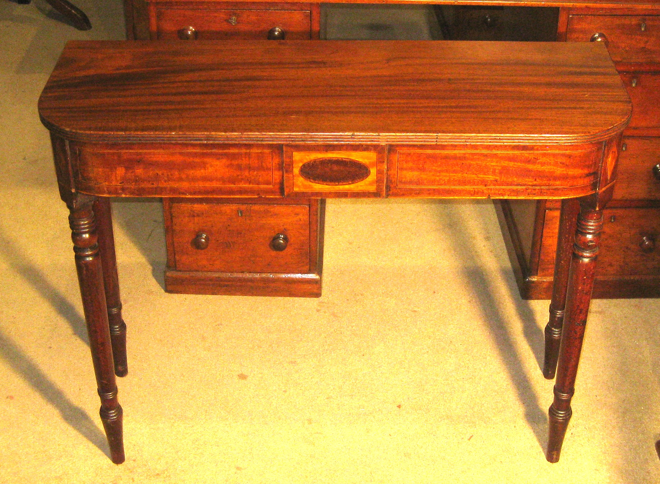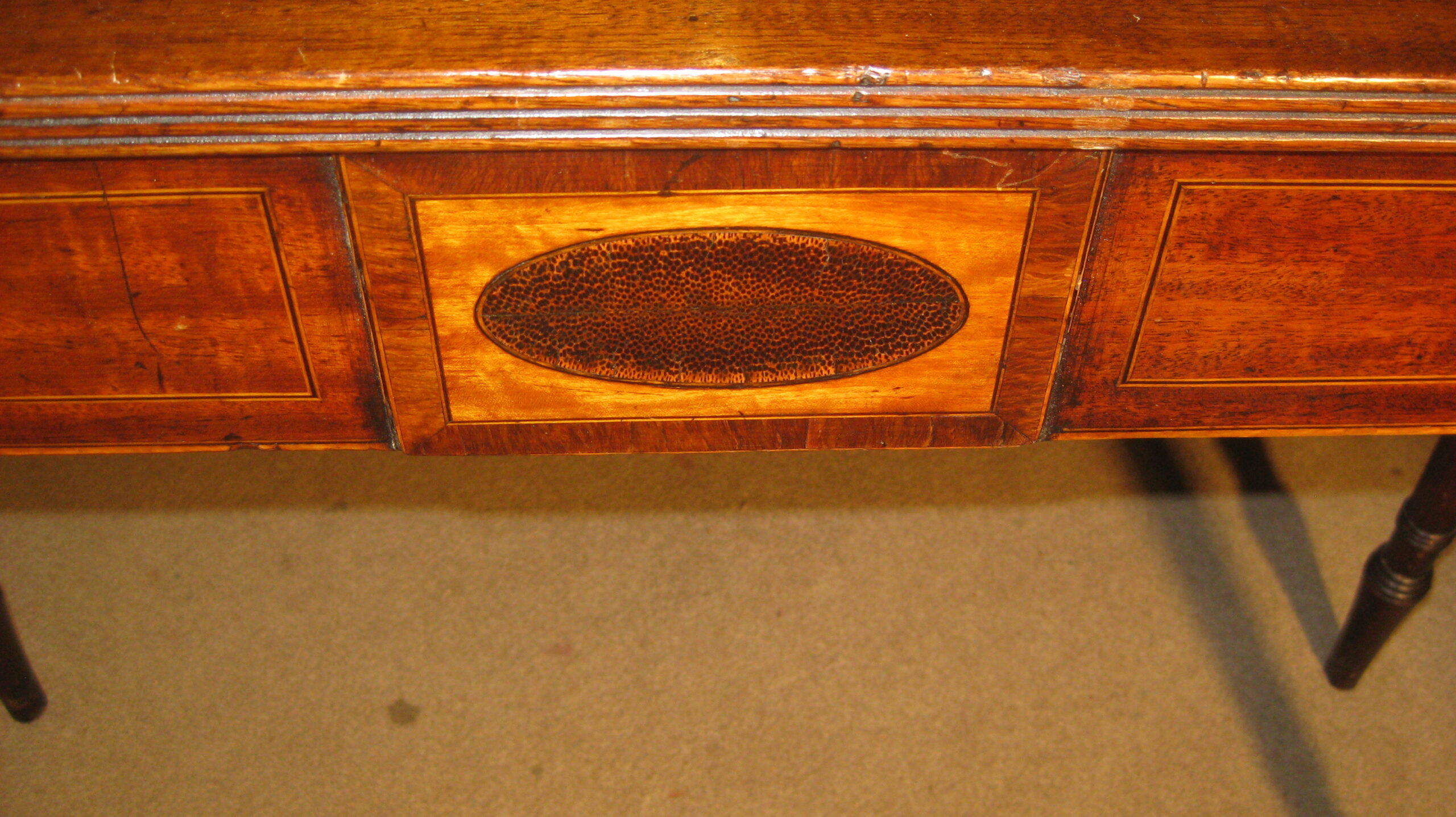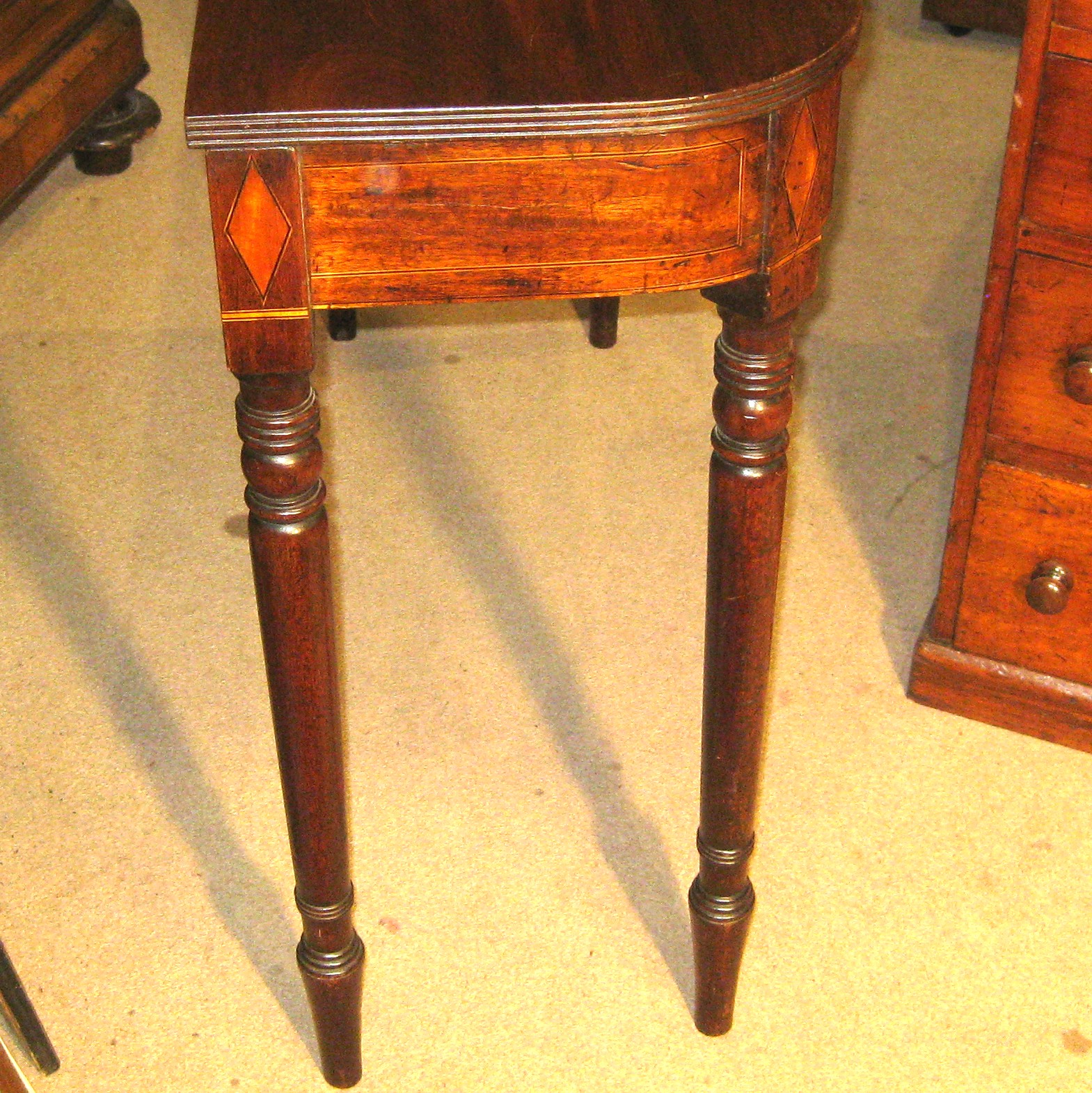 Lovely Victorian mahogany console table. With beautiful inlay to the front and sides and with well turned legs.