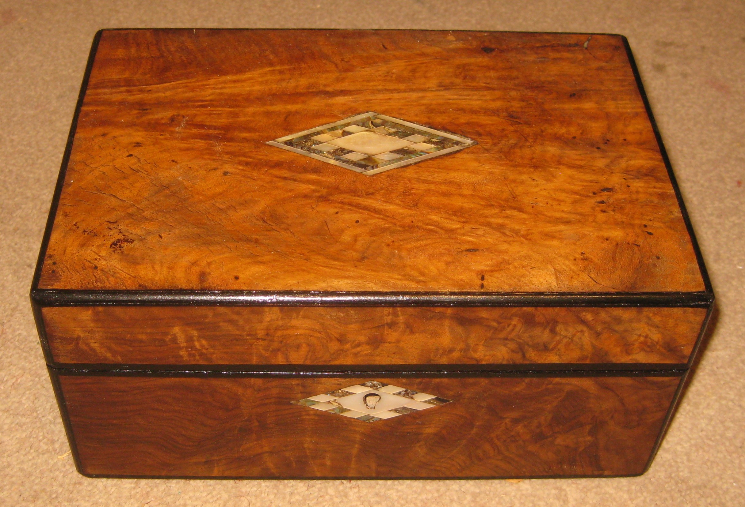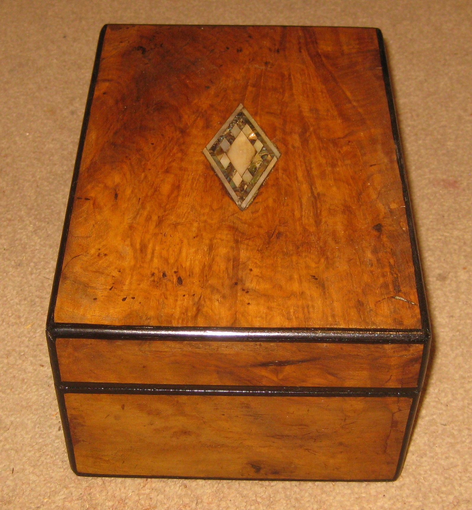 Victorian walnut box with lovely mother of pearl inlay to the top.