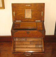 The desk was flown to America to be exhibited in the foyer of a New York hotel being used by members of a convention of Churchill enthusiasts and then eventually sold in that city in an auction to a member of the Convention in 1996 together with the detailed research about its history and a letter of provenance from Sir Winston’s private secretary, Anthony Montague Brown, a framed photograph and a number of hand-written letters from the most distinguished politician in the Country.